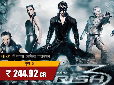 भारत में बॉक्स ऑफिस कलेक्शन फिल्म 'कृष 3'-244.92करोड़