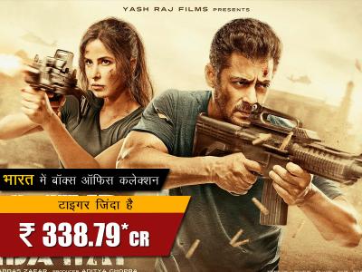 भारत में बॉक्स ऑफिस कलेक्शन फिल्म 'टाइगर जिंदा है'-338.79* करोड़