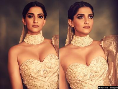 सोनम कपूर ऑफ शोल्डर गोल्डन कलर की ड्रेस में किसी महारानी से कम नहीं लग रही हैं।