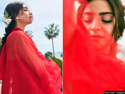 लाल रंग के गाउन में सोनम ने अपने खूबसूरत अंदाज से प्रशंसकों को स्तब्ध कर दिया।