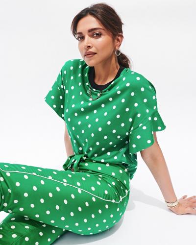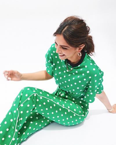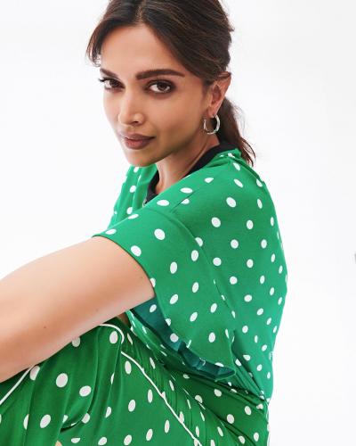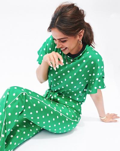 इन तस्वीरों में दीपिका ग्रीन कलर का जंप सूट स्टाइल पैंट और टॉप पहना हुआ है, जिसमें व्हाइट कलर के पोल्का डॉट बने हुए हैं। (फोटो: इंस्टाग्राम)