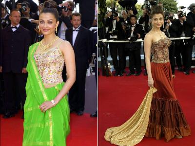 2005 में पहली बार में ऐश्वर्या राय Giorgio Armani की प्रिंटेड ड्रेस और Gucci के ब्लैक गाउन दिखी थीं।