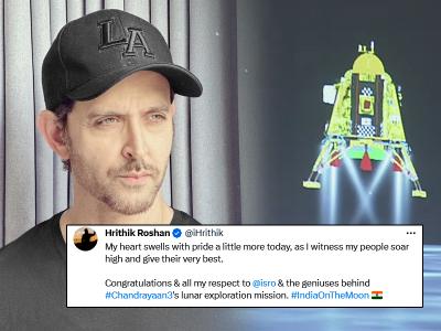 एक्टर ऋतिक रोशन ने लिखा, आज मेरी छाती गर्व से चौड़ी हो रही है. इसरो ने इतिहास रच दिया है. 'चंद्रयान 3' की सक्सेसफुल लैंडिंग पर बधाई। (फोटो क्रेडिट- ट्विटर)