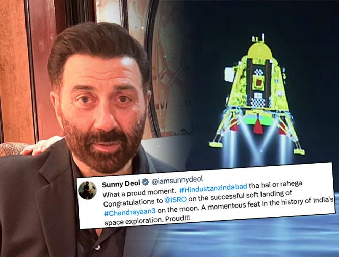 ISRO के चंद्रयान 3 की सफल लैंडिंग के बाद बॉलीवुड सितारों ने अपने अंदाज में बधाई दी है, एक्टर सनी देओल ने लिखा है, 'हिंदुस्तान जिंदाबाद है और रहेगा'। (फोटो क्रेडिट- ट्विटर)