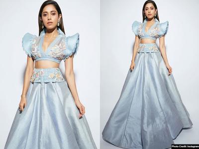 इन तस्वीरों में नुसरत ने लाइट ब्लू कलर की ड्रेस पहनी हुई है।