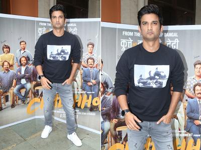 ब्लैक और ग्रे आउटफिट में दिखे सुशांत सिंह राजपूत