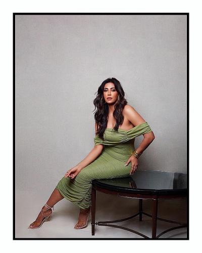 इन तस्वीरों में चित्रांगदा हरे रंग का ऑफ शोल्डर वनपीस ड्रेस पहने हुए है। जिसमें वो अपना कर्वी फिगर भी फ्लॉन्ट करती दिखाई दीं। (फोटो: इंस्टाग्राम)