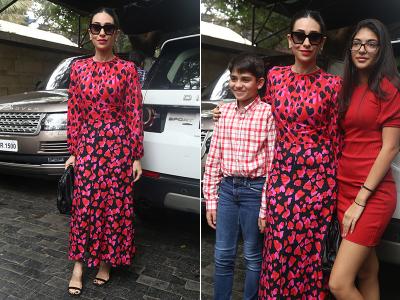 क्रिसमस थीम के मुताबिक करिश्मा लाल कपड़ों में नजर आईं