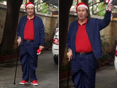 रणधीर कपूर पूरी तरह क्रिसमस के रंग में रंगे दिखे। क्रिसमस थीम के मुताबिक उन्होंने लाल टीशर्ट और ब्लू पैंट-जैकेट पहना हुआ था।