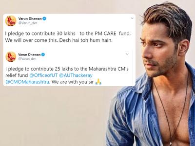वरुण धवन ने भी पीएम-केयर्स फंड में 30 लाख रुपए दान किए हैं और महाराष्ट्र के सीएम रिलीफ़ फंड को 25 लाख दिए हैं। वरुण ने अपने ट्विटर हैंडल पर लिखा, “मैं पीएम केयर फंड में 30 लाख का योगदान देने की प्रतिज्ञा करता हूं. हम इस परिस्थित से बाहर निकल आएंगे देश है तो हम हैं.”