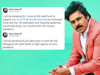 तेलुगु स्टार पवन कल्याण ने पीएम मोदी को सपोर्ट करने के लिए प्रधानमंत्री राहत कोष में 1 करोड़ का दान किये हैं और आंध्र प्रदेश और तेलंगाना सीएम रिलीफ़ फ़ंड को भी 50 लाख रुपये का दान दिया है, ताकि कोरोना से लड़ने में तेज़ी आए।