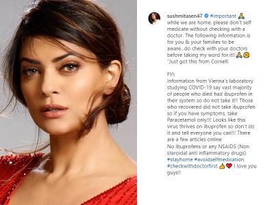 साथ ही सुष्मिता ने एक और जिक्र किया है की अगर आप को दर्द की शिकायत तो आप साधारण Paracetamol ही लें। (Photo: Instagram)