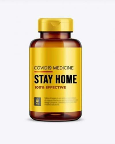 सुष्मिता सेन ने दवा की बॉटल की तस्वीर शेयर की है, उसपर लिखा हुआ है COVID-19 Medicine-STAY AT HOME
