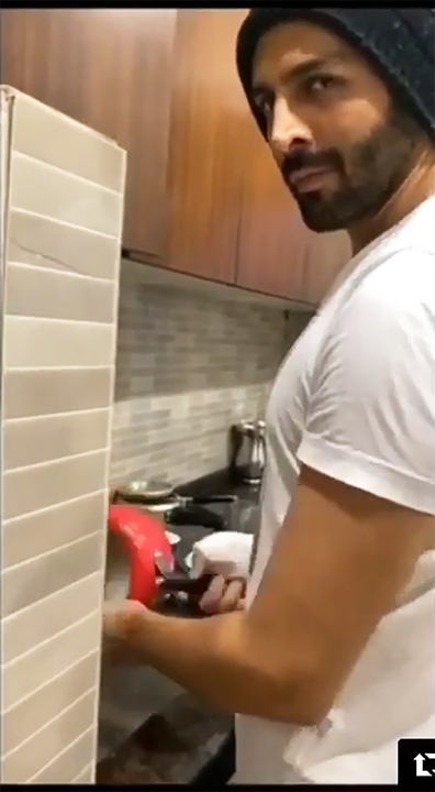 कार्तिक आर्यन भी घर पर समय बिता रहे हैं वह खाना बनाते नजर आए हैं
