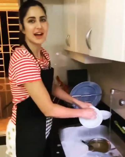 कैटरीना कैफ ने बर्तन धोते की वीडियो शेयर की , उन्होंने बताया है कैसे पानी बचाए