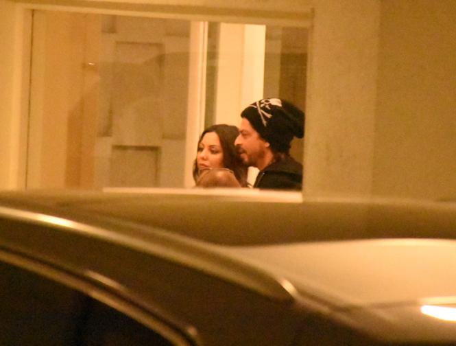 शाहरुख खान और गौरी खान सफ़ेद कलर की BMW कार में बर्थडे में शामिल होने के लिए पहुंचे।