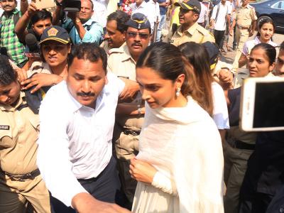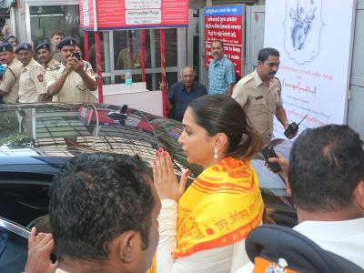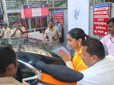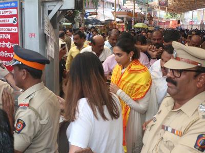 दीपिका पादुकोण सिद्धिविनायक भारी सिक्योरिटी के बीच पहुंचीं।