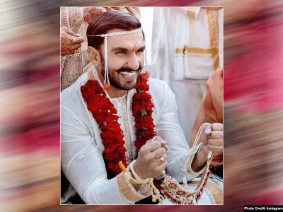 कोंकणी रिवाज की शादी में खुद रणवीर भी बेहद खुश नजर आए... पोस्ट की गई फोटो में वो हाथ में हार लिए भी नजर आए