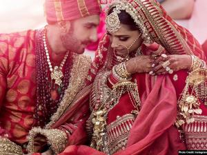 1 / 7रणवीर सिंह और दीपिका पादुकोण इटली के लेक कोमो में शादी कर ली है, दोनों अपनी शादी में बेहद खूबसूरत नजर आए हैं।2 / 7दोनों ने कोंकणी और सिंधी रीति रिवाज से शादी की है। दोनों ने कोंकणी रिवाज से शादी के दौरान काजीवरम की साड़ी पहनी हुई है।3 / 7सिंधी रिवाज की शादी में भी दीपिका बेहद सुंदर नजर आईं, दीपिका चुनरी काफी स्पेशल है। चुनरी में संस्कृत में मंत्र लिखे हैं। बॉर्डर के पास ''सदा सौभाग्यवती भव:'' लिखा है।4 / 7दीपिका के चूड़ा की बात की जाए तो वो भी बाकियों की तरह से हटकर ही था5 / 7कोंकणी रिवाज की शादी में खुद रणवीर भी बेहद खुश नजर आए... पोस्ट की गई फोटो में वो हाथ में हार लिए भी नजर आए6 / 7दीपिका कोंकणी शादी में हंसती हुई नजर आईं7 / 7दोनों की सगाई की अंगूठी सबसे खास कही जा रही है,सिंधी ब्राइडल लुक में उनकी एंगेजमेंट रिंग की साफ झलक देखने को मिलती है, जबकि दीपिका की डायमंड रिंग स्कवेयर शेप में है
