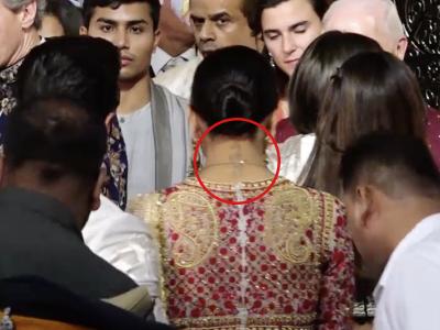 एंटीलिया में दीपिका की एंट्री का एक वीडियो वायरल हो रहा है, जिसमें उनका बैक लुक दिखाई दे रहा है, दीपिका के RK टैटू की हल्की झलक दिख रही है