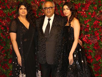 बोनी कपूर अपनी बेटी अंशुला और खुशी के साथ आए नजर