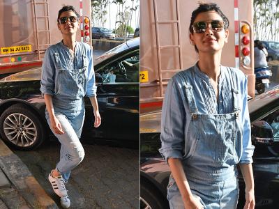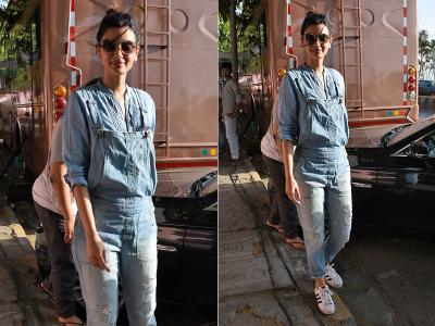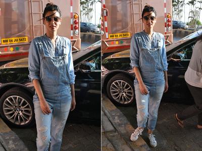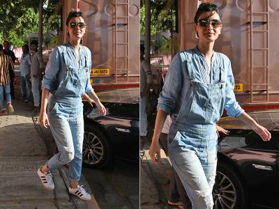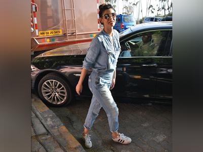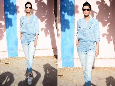 वह डेनिम आउटफिट में दिखी हैं