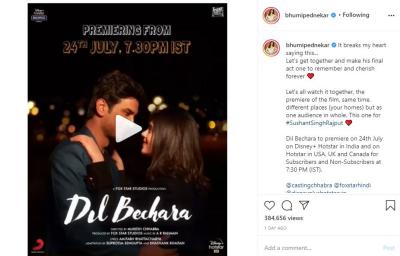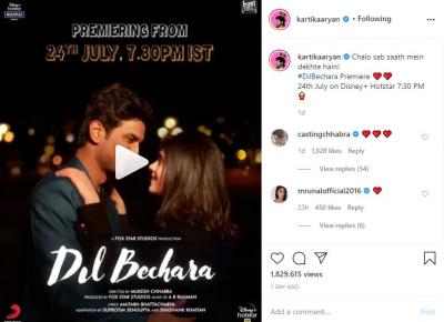 कार्तिक आर्यन ने 'दिल बेचारा' का पोस्टर शेयर करते हुए लिखा- चलो सब साथ में देखते हैं। (फोटो सोर्स- इंस्टाग्राम)