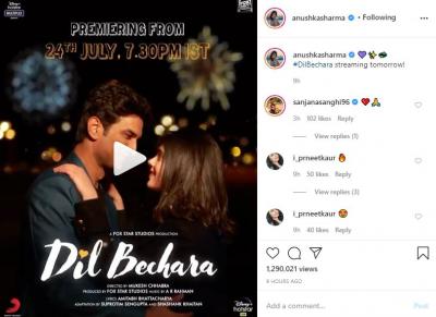 अनुष्का शर्मा भी पोस्टर को शेयर करने वाले सेलेब्स की लिस्ट में शामिल हैं। उन्होंने लिखा- कल रिलीज होगी दिल बेचारा। (फोटो सोर्स- इंस्टाग्राम)