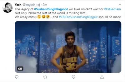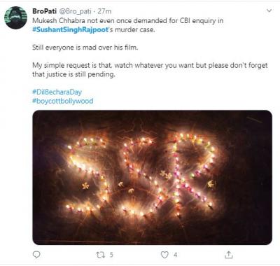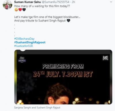 वहीं, फिल्म के रिलीज होने से पहले #SushantSinghRajpoot ट्विटर पर ट्रेंड कर रहा है। फैंस एक-दूसरे से सुशांत की आखिरी फिल्म देखने की अपील कर रहे हैं। (फोटो सोर्स- ट्विटर)