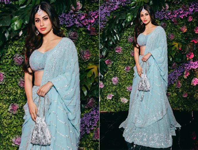 शादी में दिनेश विजन नेवी ब्लू कलर की शेरवानी में नजर आएं, वहीं उनकी दुल्हनिया पीच कलर के लहंगे के साथ गोल्डन और ग्रीन टच की ज्वेलरी पहने नजर आईं।