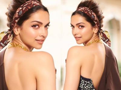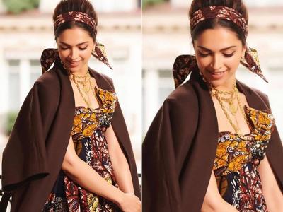 दीपिका पादुकोण ने ब्राउन कलर की विंटेज ड्रेस पहनी हुई थी।