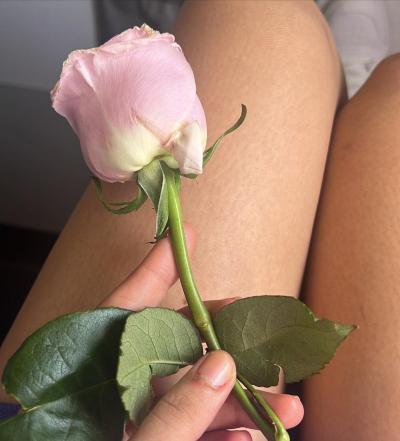 वहीं तीसरी फोटो में दिशा अपने पैरों पर पिंक गुलाब लिए नजर आ रही हैं। (फोटो: इंस्टाग्राम)