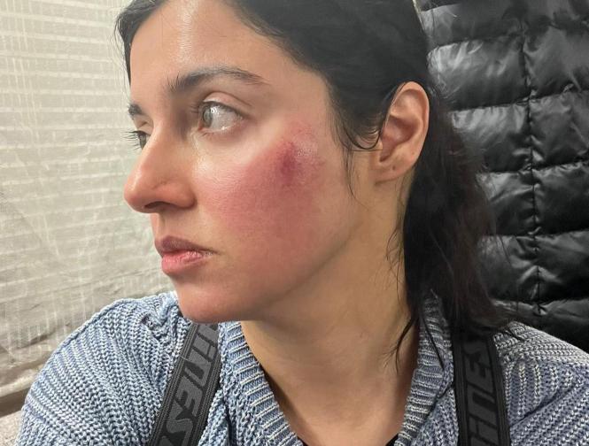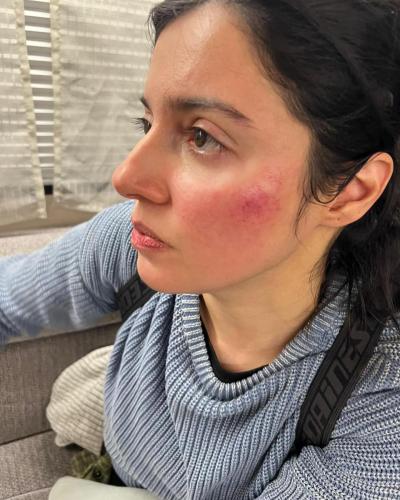 दिव्या खोसला कुमार ने अपने इंस्टाग्राम हैंडल पर अपने घायल चेहरे की तस्वीरें शेयर कीं। जिसमे उनके चेहरे के एक तरफ चोट के निशान देखे जा सकते हैं। (फोटो: इंस्टाग्राम)
