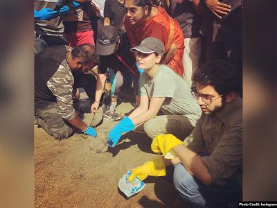 दीया मिर्जा और आदित्य ठाकरे ने साथ मिलकर की दादर बीच पर सफाई और लगाए पौधे