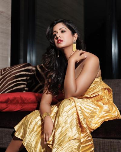'दृश्यम 2' फेम एक्ट्रेस इशिता दत्ता ने गोल्डन कलर की ऑफ शोल्डर ड्रेस में दिए ग्लैमरस पोज, देखे तस्वीरें