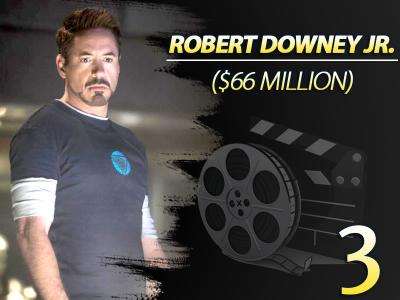 तीसरे स्थान पर रॉबर्ट डाउनी जूनियर है जिसकी कमाई $ 66 मिलियन है