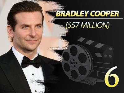 ब्रैडली कूपर ने छठा स्थान प्राप्त किया है और उनकी कमाई $ 57 मिलियन है