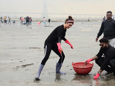 ईशा गुप्ता हाल ही में मुंबई में यूथ और बाकि साथियों के साथ मिलकर बीच की सफाई करती दिखीं।