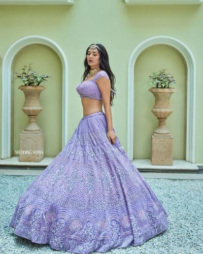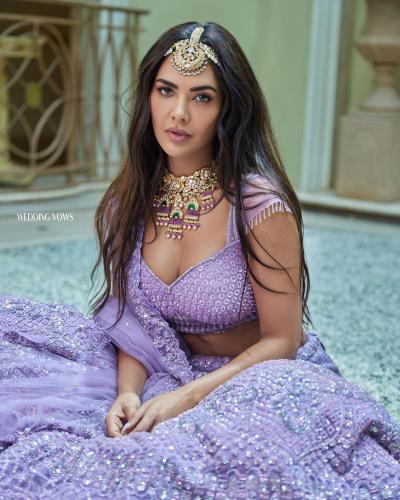लाइट पर्पल लहंगे में बेहद खूबसूरत लग रहीं ईशा गुप्ता, डीपनेक ब्लाउज में दिए किलर पोज़