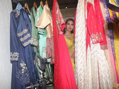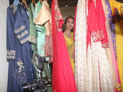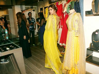 बहन के कलेक्शन लॉन्च में ईशा गुप्ता का दिखा ट्रेडिशनल लुक, देखें तस्वीरें