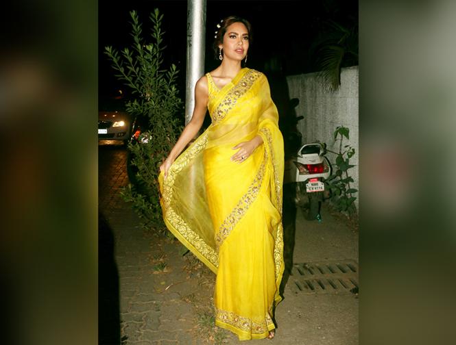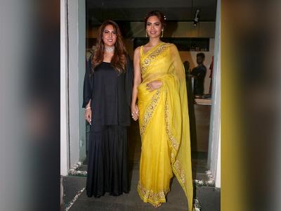 इस मौके पर ईशा पीले रंग की साड़ी में दिखीं।