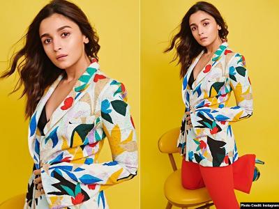 इन तस्वीरों में आलिया भट्ट ने मल्टीकलर ब्लैजर और रेड पैंट पहनी हुई है।