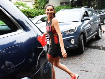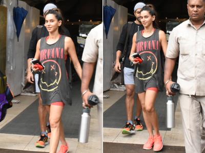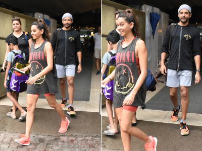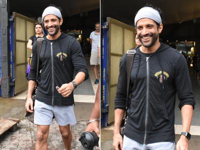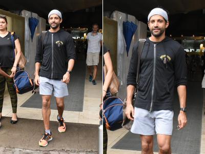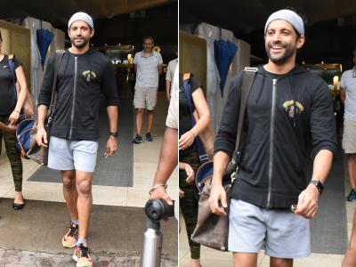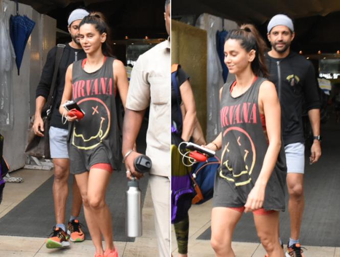 शिबानी दांडेकर इस दौरान ऑरेंज शॉर्ट्स और ग्रे टी शर्ट में दिखीं वहीं फरहान ग्रे और ब्लैक कलर की जिम ऑउटफिट में नजर आए।