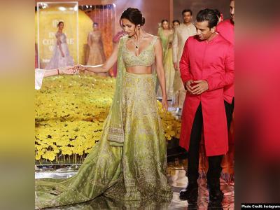 एक्ट्रेस ने ग्रीन कलर का लहंगा पहना हुआ था