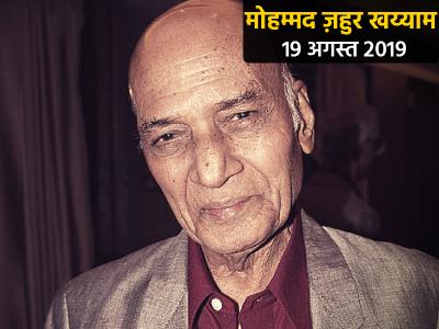 मशहूर संगीतकार खय्याम का निधन 19 अगस्त 2019 को हुआ।मशहूर संगीतकार खय्याम का।मोहम्मद जहूर खय्याम ने संगीत की दुनिया में अपना सफर 17 साल की उम्र में लुधियाना से शुरू किया था। उन्हें अपने करियर का पहला बड़ा ब्रेक ब्लॉकबस्टर मूवी 'उमराव जान' से मिला था
