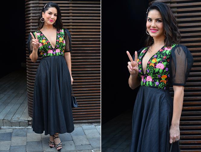 सनी इस दौरान ब्लैक आउटफिट में बहुत ही खूबसूरत नजर आईं