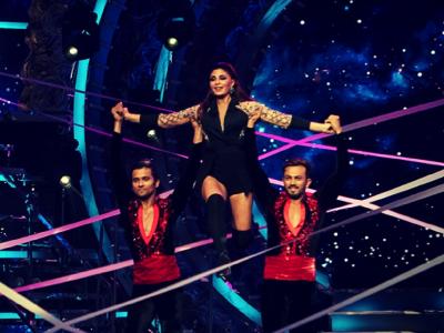 जैकलीन फर्नाडिस स्टेज पर डांस करती हुईं।