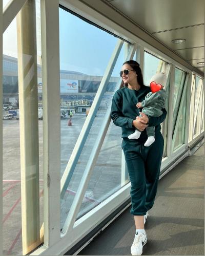 इस दौरान गौहर खान बेटे को गोद में उठा कर खिलाती नजर आ रही हैं। (फोटो- इंस्टाग्राम)