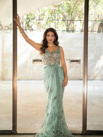 वहीं गीता बसरा सी-ग्रीन सेक्विन साड़ी और मैचिंग क्लच के साथ पूरी महफिल लूटती दिखीं। (फोटो क्रेडिट: इंस्टाग्राम)