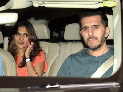 नेहा धूपिया ने पति अंगद बेदी के साथ देखी फिल्म...